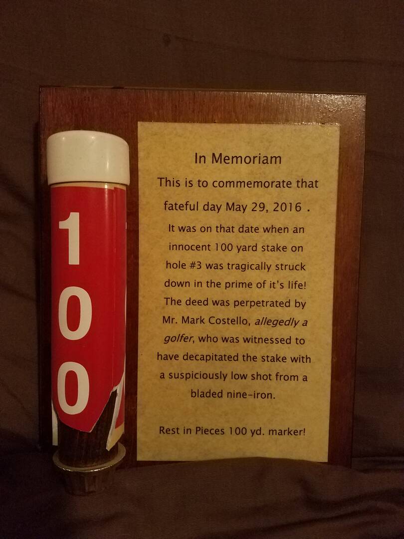 Later that summer I decapitated a 150 marker on a par 4...my drive hit it on the fly.