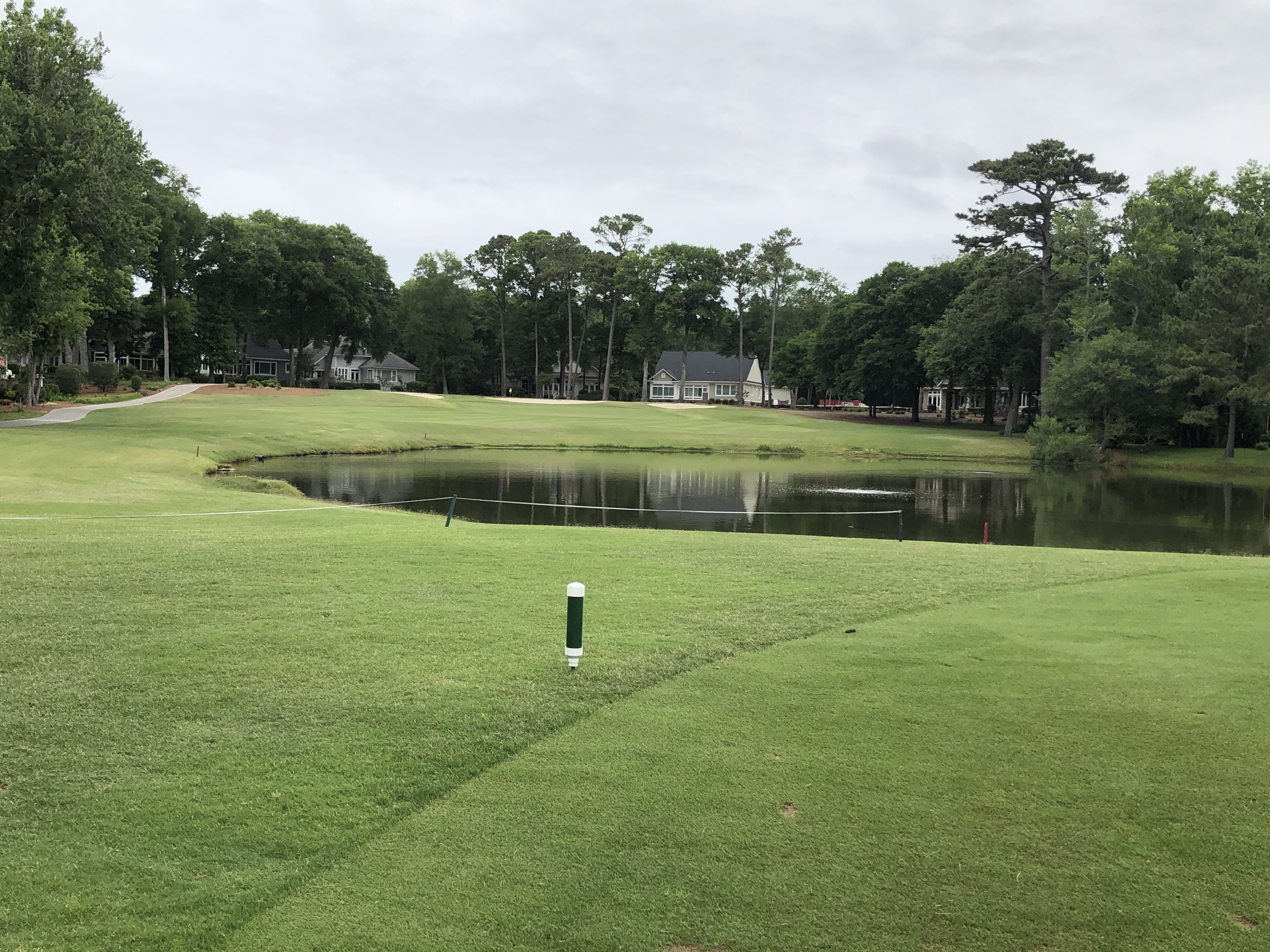 GREENS: Nota bene. The greens today would NOT win any beauty contest BUT they putted beautifully-and quick. Wild stimp guess-at least 9.5. I mistakenly remembered Tidewater's greens with more bold contours. Not the case today. Back nine set definitely seemed to have more (subtle/internal) movement than the front side.