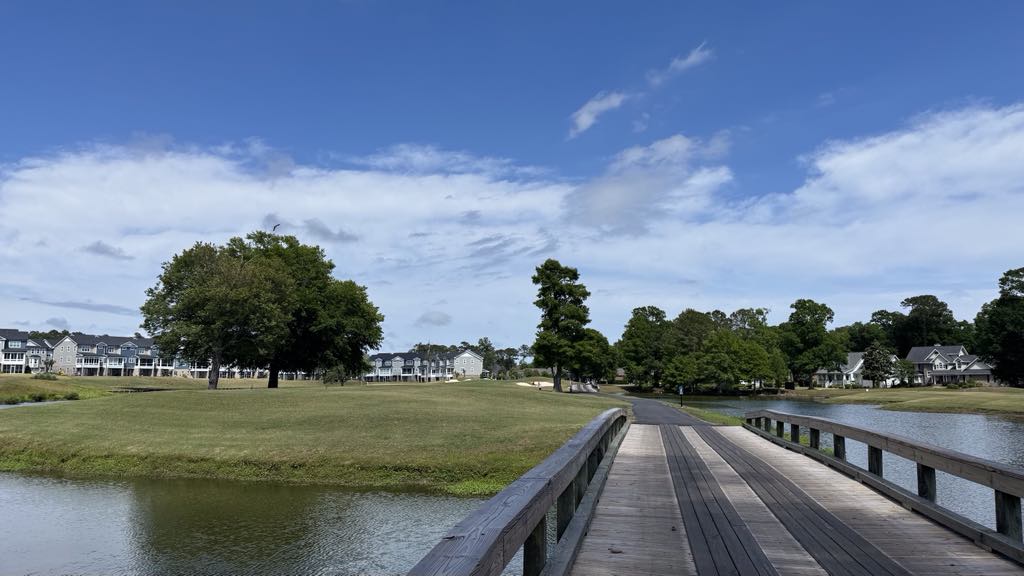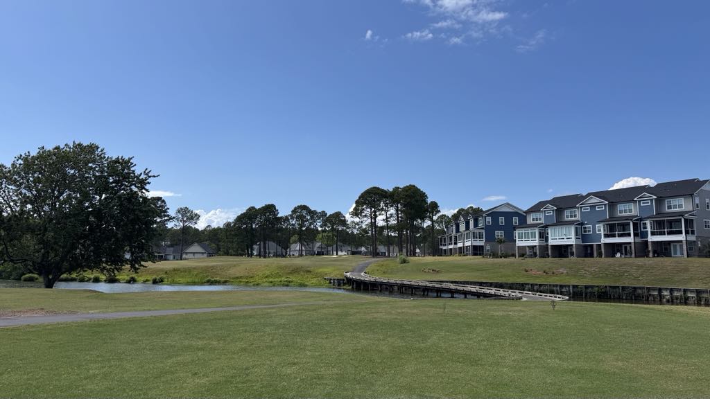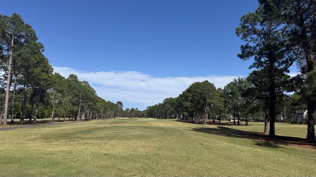Sea Trail Byrd is a relatively permissive par 72 that plays 6,142 yards from the white tees and 4,510 yards for the ladies (see scorecard at https://seatrail.com/byrd-course/ ). And according to the staff, it's considered the most challenging of the three courses offered here.