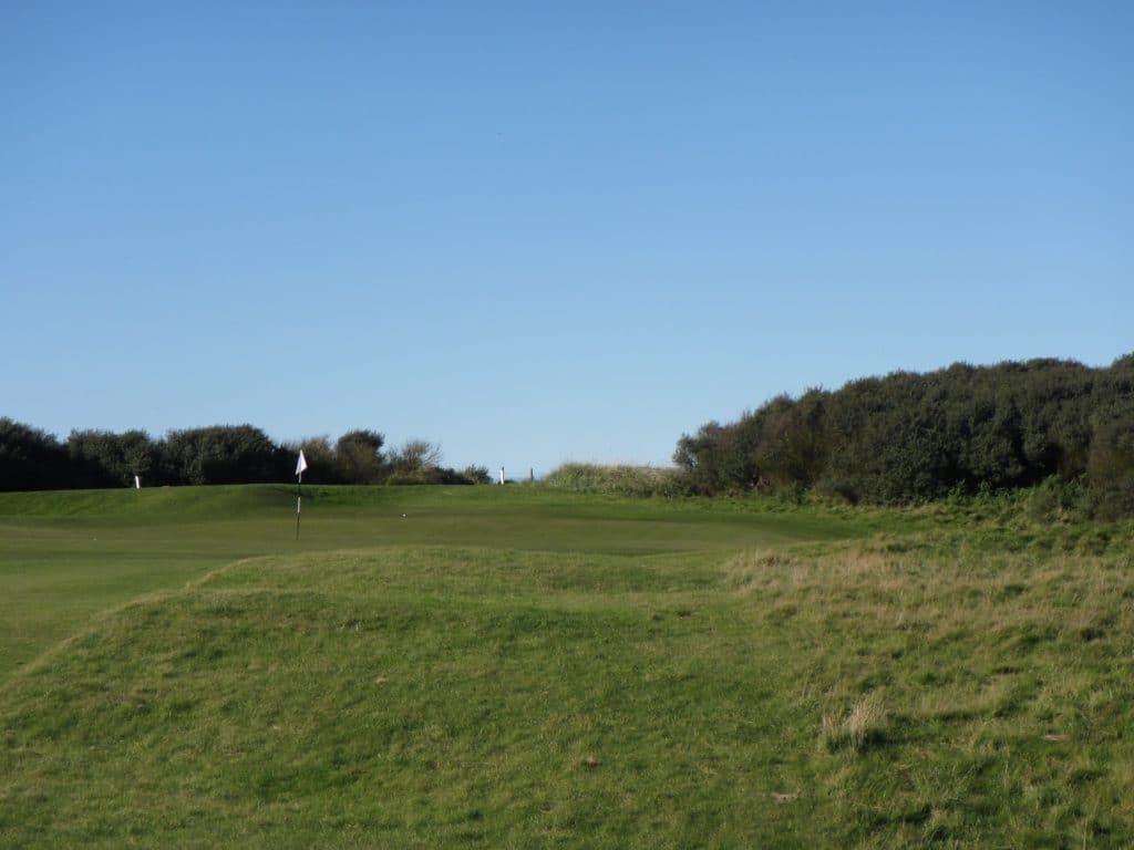 Today was a great day of golf. Our tee time on one of the older courses in the world was at 11:07am, the sun was shining and the temperature was reaching towards 13 degrees Celsius. It was my turn for a caddy and Gary was excellent, showing us where to go (and thank goodness as we would have had troubles on several holes including the blind shots on the par 3 #5 and the par 4 #17 which had the biggest greenside bunker I had ever seen). I had a rough go on the front nine, having trouble with tee shots and fighting my way in the deep fescue on my way to a 49. The course plays long at 6544 yards with long par 4s at 7 (430 yards), 8 (431 yards), 9 (444 yards), 10 (454 yards) and 13 (460 yards). Gary was very patient handing me clubs, cleaning the ball and giving us directional advice to ensure that our balls were at least started in the right direction.